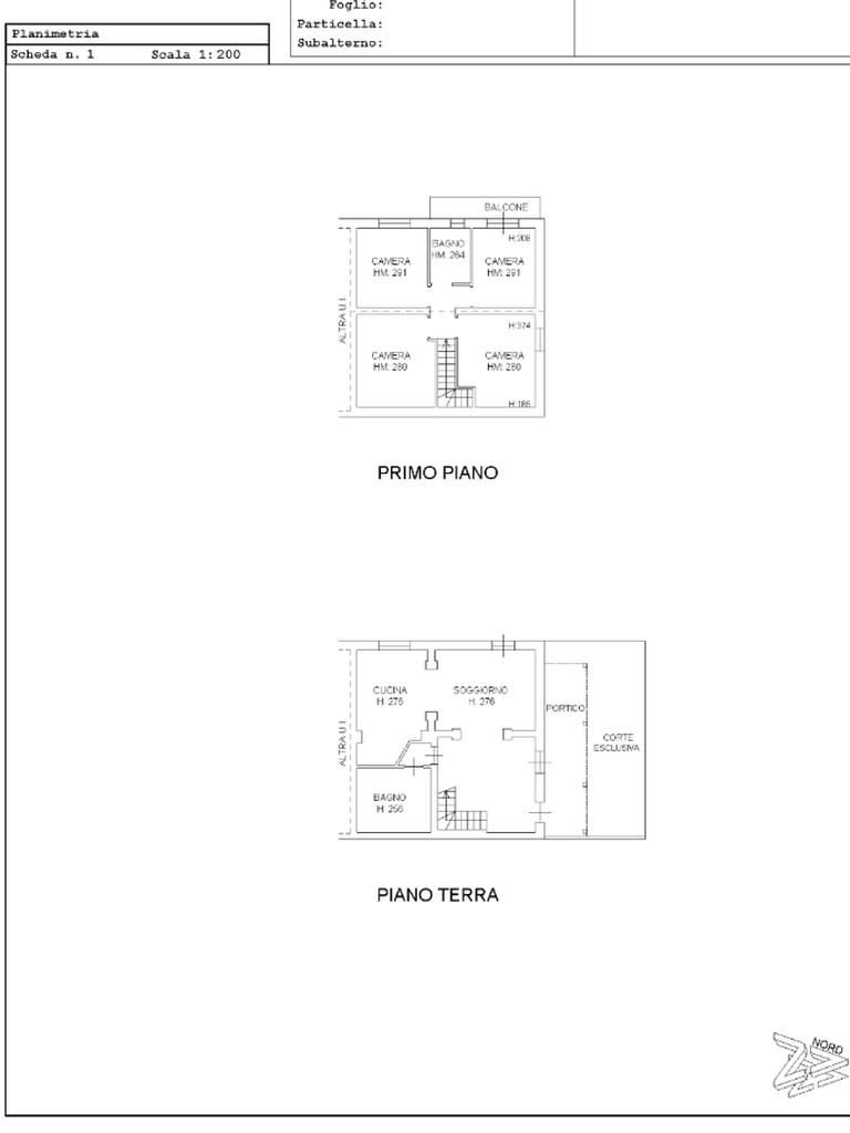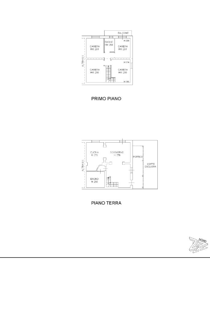 L'immobile si sviluppa su più livelli, al paino terra troviamo la zona giorco con ingresso, sala, cucina abitabile e bagno con doccia. Al primo piano abbiamo due camere matrimoniali, due camerette, il bagno, il corridoio e il balcone. Completano la proprietà il cortile privato, il portico, i due posti auto e il giardino privato recintato di circa 550mq.