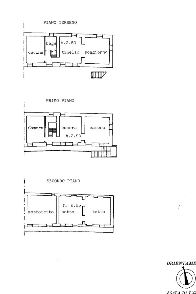L'immobile si sviluppa su più livelli, al piano terra troviamo una sala con cucina a vista, un bagno e una camera da letto. Al primo piano, con accesso tramite scala esterna, troviamo il secondo appartamento diviso in soggiorno, cucina abitabile, camera da letto e bagno. All'ultimo piano troviamo il piano mansarda, al momento grezzo, sfruttabile come ulteriore appartamento. Abitazione sfruttabile anche come casa unica.