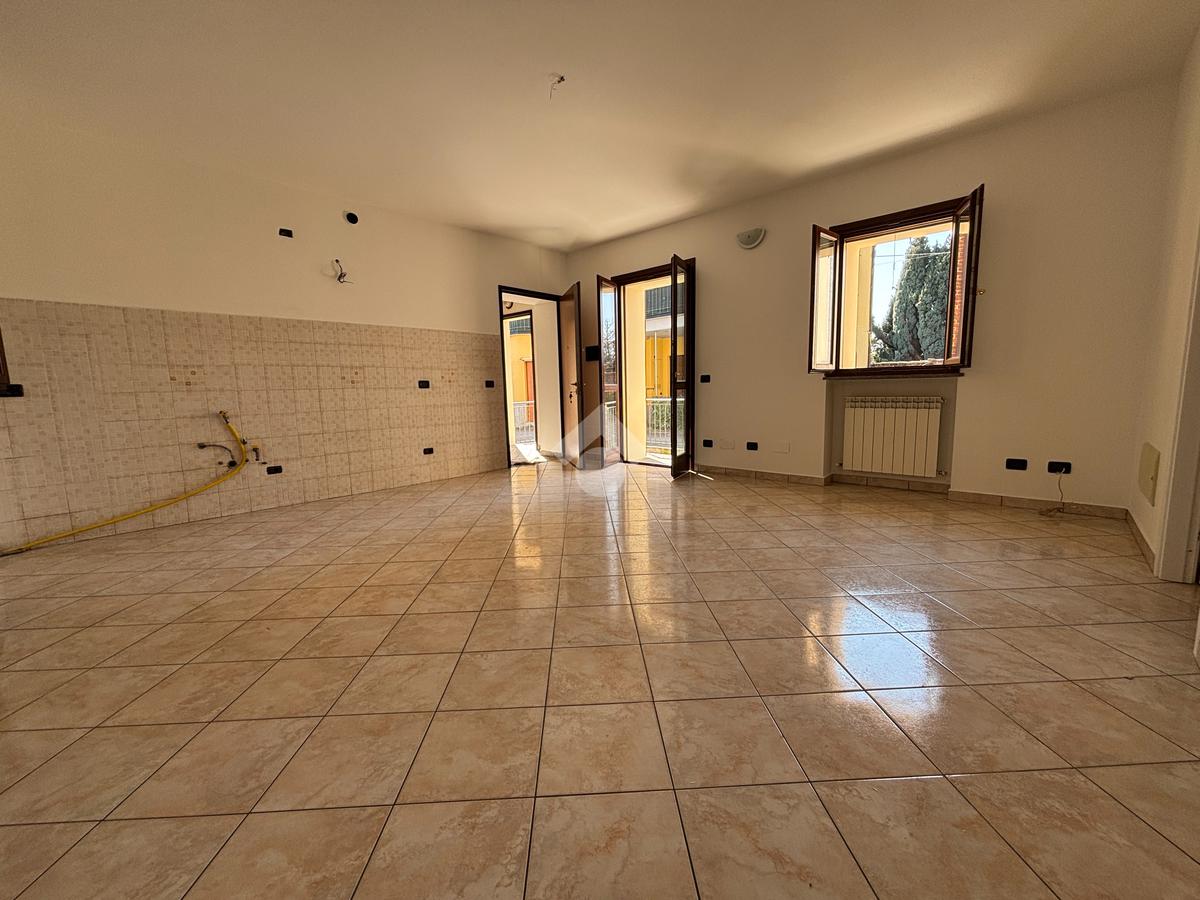 Appartamento composto da una grande sala con cucina a vista, disimpegno, camera matrimoniale, cameretta e comodo bagno. Completo di posto auto, cantina e terrazzino esterno sfruttabile nella stagione estiva.
