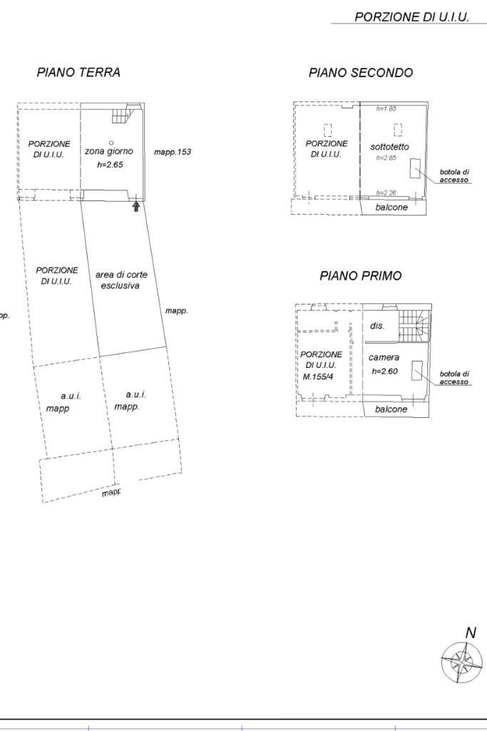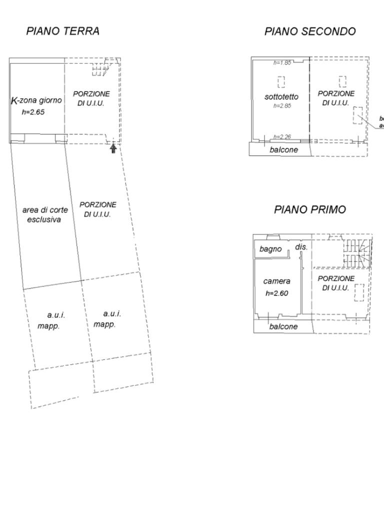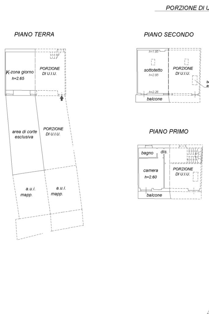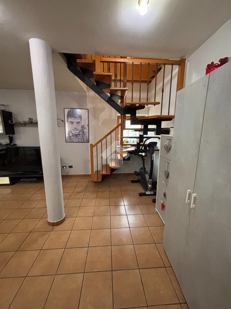L'immobile si sviluppa su due livelli per circa 50mq per piano. Al piano terra troviamo la zona giorno con ampio salone e cucina a vista con affaccio sul terrazzo privato. Tramite una comoda scala interna si giunge al primo piano composto da due camere matrimoniali, il disimpegno, il bagno e il balcone. All'ultimo piano troviamo un ampia mansarda da ultimare con balcone.